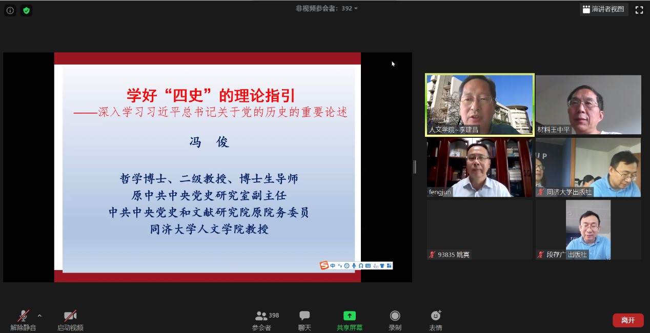 党委联合人文学院、出版社、艺术与传媒学院和机械学院党委通过线上平台联合举办了《学好“四史”的理论指引——深入学习习近平总书记关于党的历史的系列重要论述》的线上讲座,学习讲座由人文学院党委书记李建昌主持,主讲人为人文学院教授、原中共中央党史研究室副主任、中共中央党史和文献研究院原院务委员(副部长级)的冯俊教授。材料学院、人文学院、艺术与传媒学院、机械学院、出版社的教职工、学生党员和入党积极分子共计800余人参加了讲座。