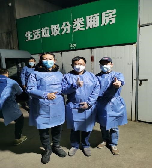 一波三折的“寻货之路”。谭庆刚老师先是在学院高分子材料系群里发了求助信息寻找货源,系里的老党员任杰老师积极帮忙联系到了昆山的供应商,但由于位处外省,运送困难,没有成功购货。之后,谭老师通过社区党员服务群成功地在上海联系到了500套隔离服货源。