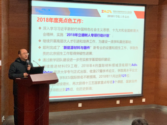 黄云辉院长作2018年学院工作报告。黄院长回顾了2018年学院的特色工作,然后分别从学院的师资和人才工作、人才培养和教学、科研与平台、实验室工作和安全、学生工作、财务决算六个方面全面汇报了2018年度学院取得的主要工作成绩。系统总结了事业健康快速发展的成功经验,深刻分析了学院进一步发展面临的形势、特别是国家“双一流”建设带来的重大机遇和挑战,明确提出和部署了2019年学院改革发展的工作思路和重点工作任务。王中平书记作学院财务情况报告,汇报了2018年财务预算执行情况。