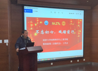 嘉定校区德才楼二楼报告厅召开了第四届教代会暨工代会第三次全体会议。材料学院学科主任黄云辉、党委书记王中平、党委副书记袁华、王凌凌,,学院教代会代表及列席代表共33人出席了会议。姚武、邱军副院长列席了会议.