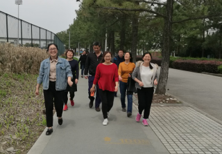 此次健步走活动从德才馆出发,经过通达馆,绕过体育馆的健康步道,途径济海、济事楼、同心楼、高尔夫球场。大家穿着轻便的运动服饰,迈开步子、昂首向前,沐浴着阳光,在春风的陪伴下边走边欣赏沿途风光,展示着学院教师们良好的身体素质。