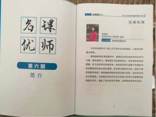 该课程可以激发学生对工程建设检测行业的学习兴趣,为学生毕业后从事相关工作起到积极的引导作用,为国家和行业培养更多优秀的建筑材料科技工作者,培养一批从事建筑物无损检测工作的人才,为上海市和国内各省市的建筑材料与建设工程及检测机构注入新的血液和力量。