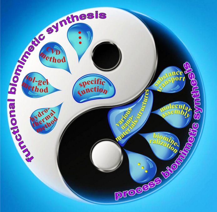 一、针对纳米材料仿生合成领域概念模糊的现状,首次对该领域进行系统分类,将其划分为“功能仿生合成”(functional biomimetic synthesis)和“过程仿生合成”(process biomimetic synthesis)两大类(见下图)。它们是完全不同的两个方向,前者是“性质”,后者是“方法”,过去一直含混不清。