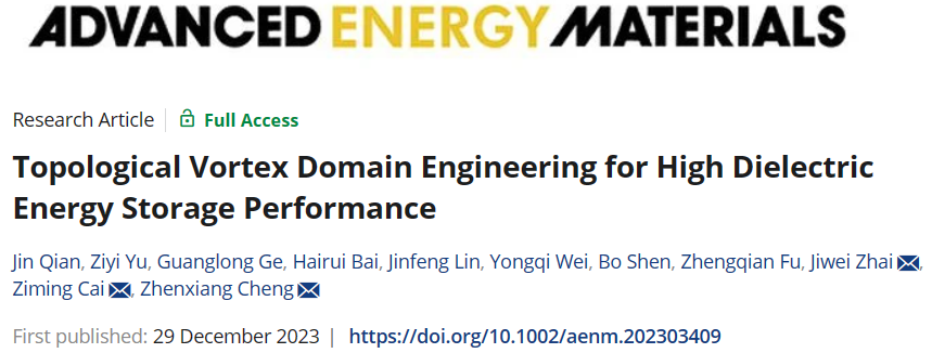 翟继卫教授研究团队将以上研究成果以《Topological Vortex Domain Engineering for High Dielectric Energy Storage Performance》为题发表于《Advanced Energy Materials》上。第一作者为歪歪漫画