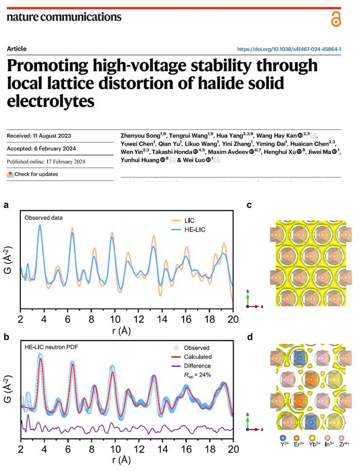材料学院车用新能源研究团队与中国科学院高能物理研究所简宏希等人合作通过在晶格中引入不同离子来对局部结构进行调整,有效提升了固态电解质材料的离子电导率及电化学稳定性。研究成果以“Promoting high-voltage stability through local lattice distortion of halide solid electrolytes”和“Local structural features of medium-entropy garnet with ultra-long cycle life”为题分别发表于《自然·通讯》 (Nature Communications)和《物质》(Matter),歪歪漫画