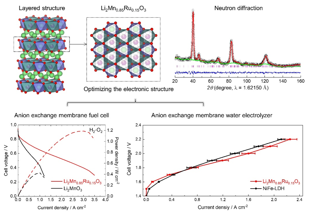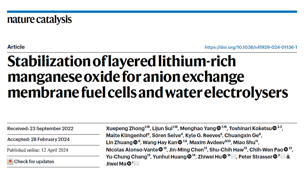 马吉伟教授团队的这一研究成果。论文题目为“Stabilization of layered lithium-rich manganese oxide for anion exchange membrane fuel cells and water electrolysers”。