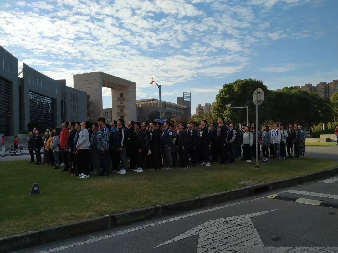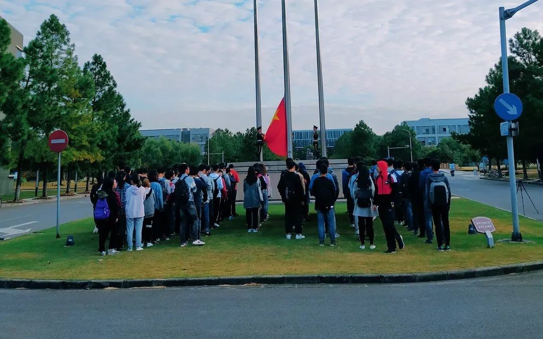 升旗仪式在嘉定校区庄严举行。学院近两百名学生参加升旗仪式,高玉磊、王凌凌、周龙、李楠、马嘉宇老师等,也出席了升旗仪式。