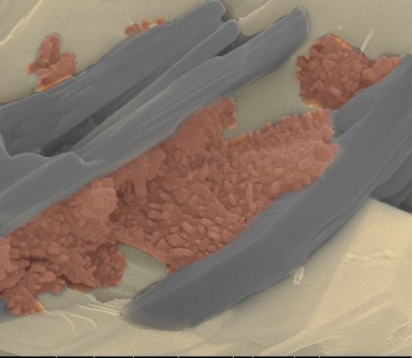作品介绍:历史上有许多文明在岁月漫长的更迭里悄然遗失,比如人们曾在山谷中发现文字石碑的巴比伦文明、深埋在海底的亚特兰蒂斯文明等等。当你查看这幅电镜图时,你会疑心你看见的是正是某段曾经辉煌的文明遗留下来的文物,当水泥化为碑石,酸盐化作沙土,偶尔被风吹走表层的沙石才会露出在它怀里珍藏许久的秘密宝物。我们要珍惜并正视如今的文化,努力接纳它,发现它,作为现代社会的青年,更要发自肺腑地学会热爱我们传承千年历久弥新的中华文明。