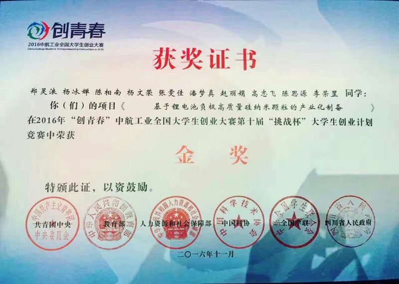 郑灵浪团队获奖证书