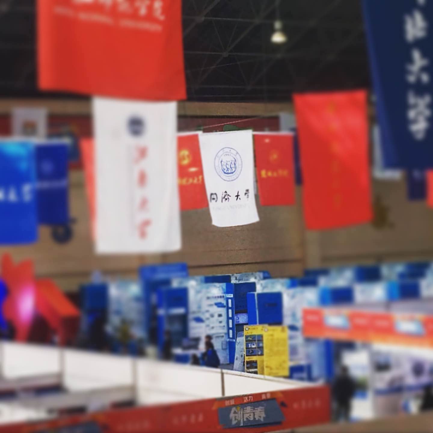 我校校徽飘扬于比赛场馆上方