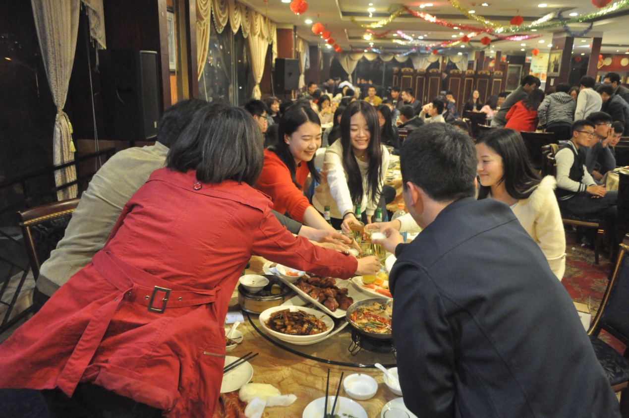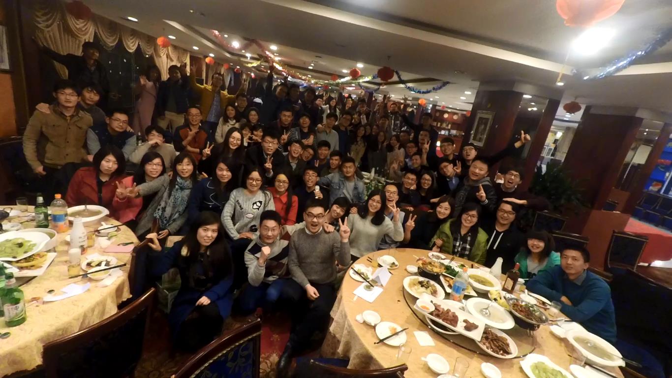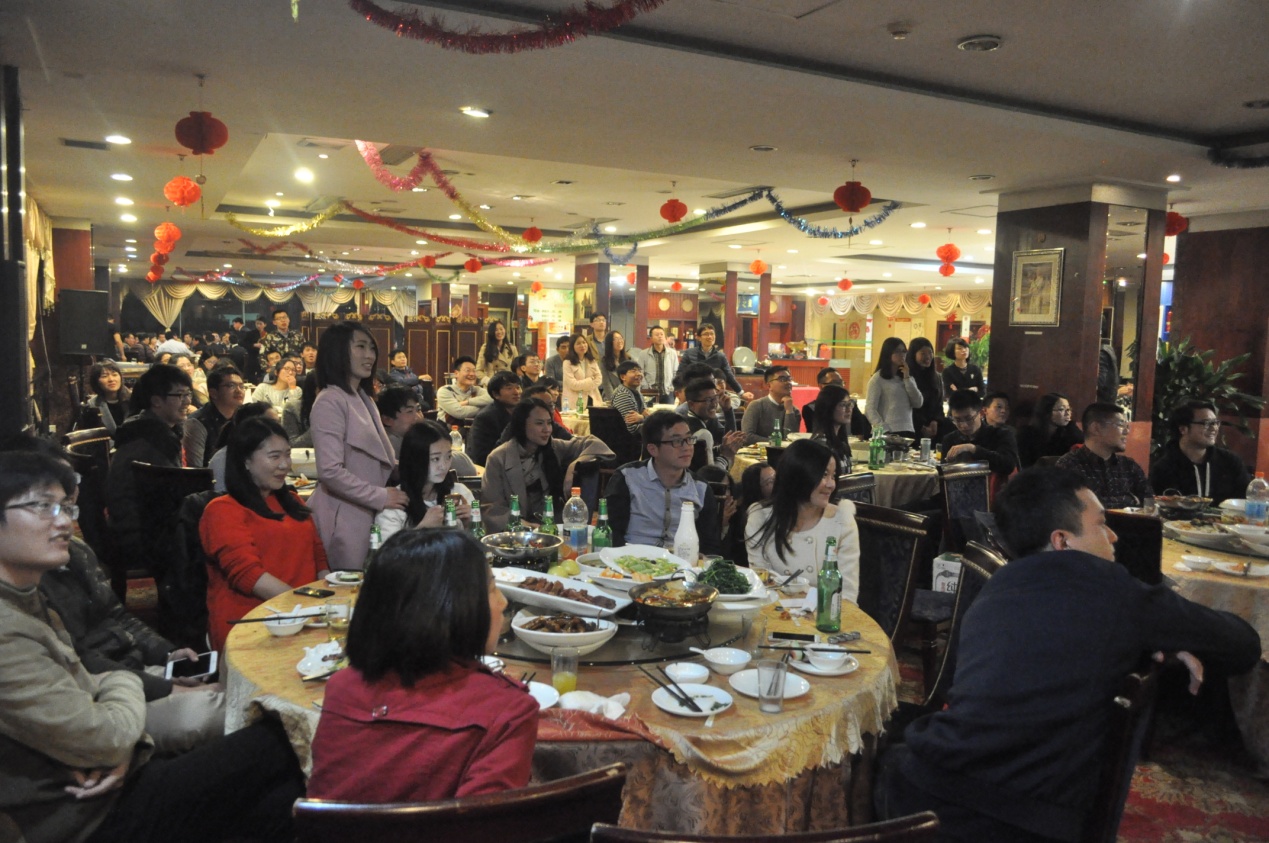 材料学院13级硕士毕业生联欢晚会在新蕾枫大酒店二楼宴会厅举行。学院老师袁怡洁、宋文娟一行、辅导员代表吉莉,以及13级硕士毕业生近100人参加了晚会。