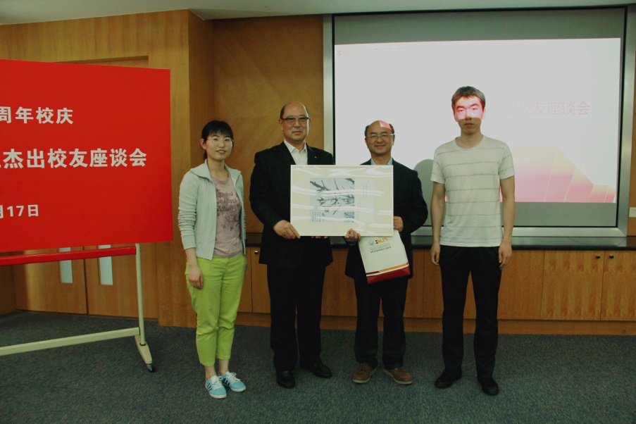 座谈会最后,同学们向郭文叁校友赠送了纪念品:同学们歪歪漫画