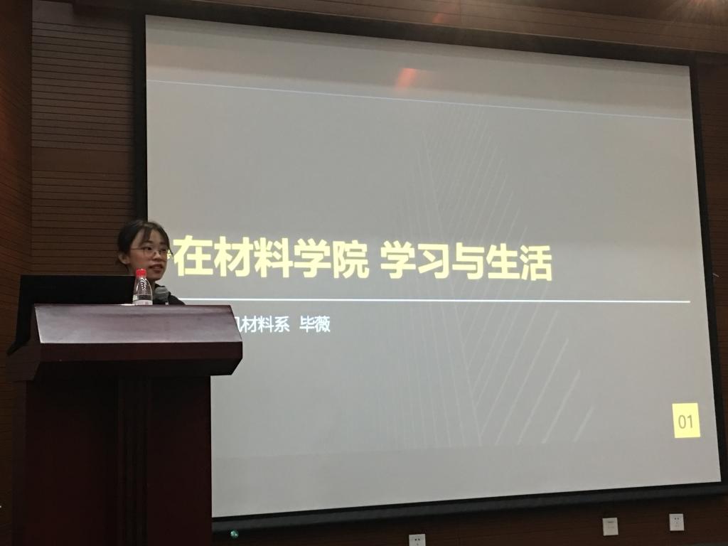 材料学院渡过,与材料学院有着特殊的“情结”,他和同学分享了材料的神奇,有时候只要添加一点其他材料就能改变另一种材料的性能,同时吴凯老师还指出目前我国还存在很多“卡脖子”技术,而很多“卡脖子”技术的根源就是材料,科研要同国家的发展紧密结合。99级学姐胡青莲作为校友代表,与同学们分享了属于她自己独特的“材料人生”,作为一名材料人,每每见到自己参与施工、设计的混凝土,自豪感油然而生,同时学姐还同我们分享了她从业十余载的心得体会,我们要有深度和广度,除了坚持自我,也要学会妥协、服从。高分子材料专业博士研究生陈帅和无机材料专业硕士研究生毕薇作为学生代表,和同学们分享了他们的研究生生活,学习不仅是专业知识积累的过程,也是一个开阔视野、思维方式的转变的过程,追求永无止境,每个人都可以随时补充自己的追求列表。报告中,老师们耐心、细致的解答了同学们的提问。