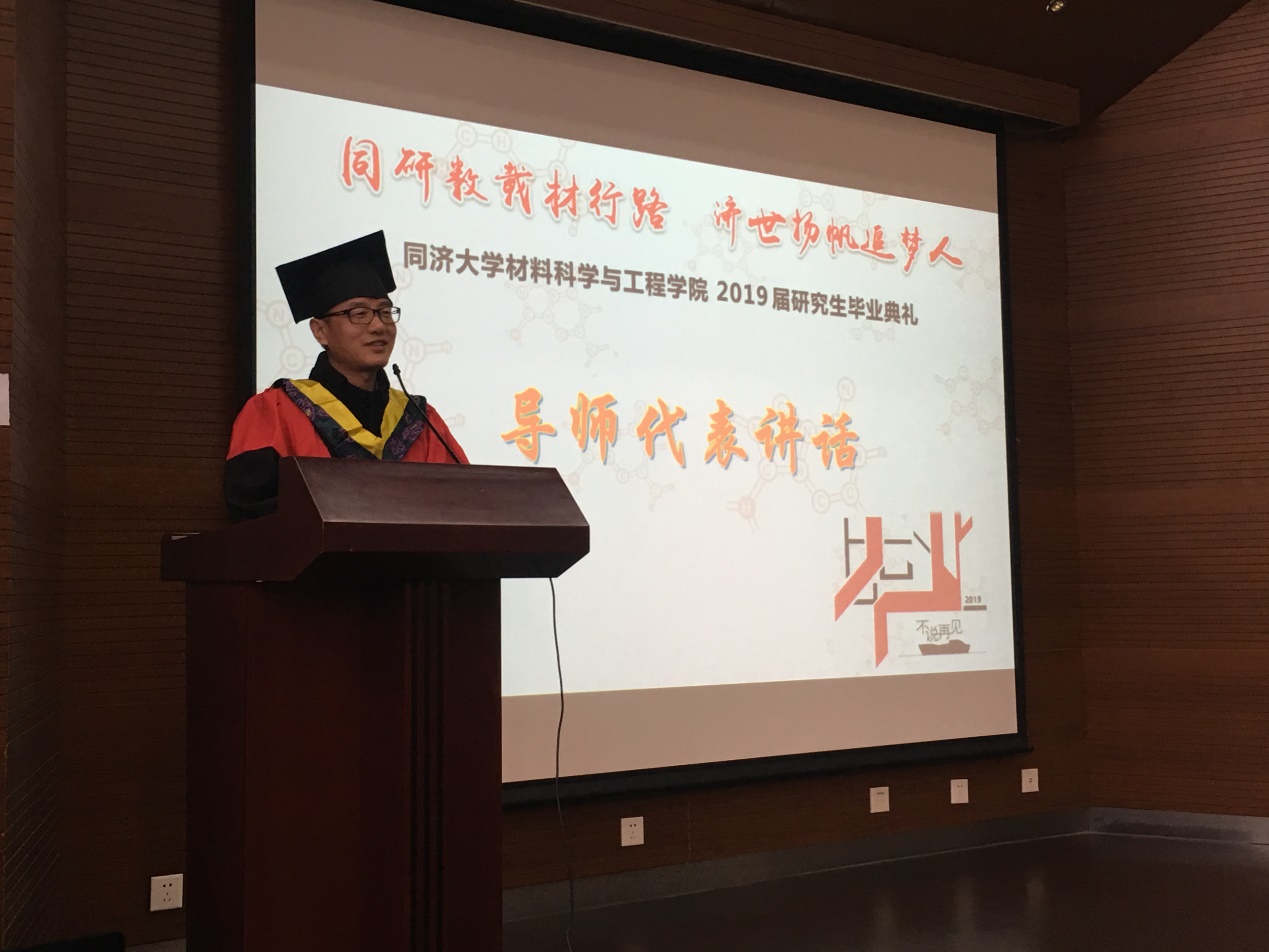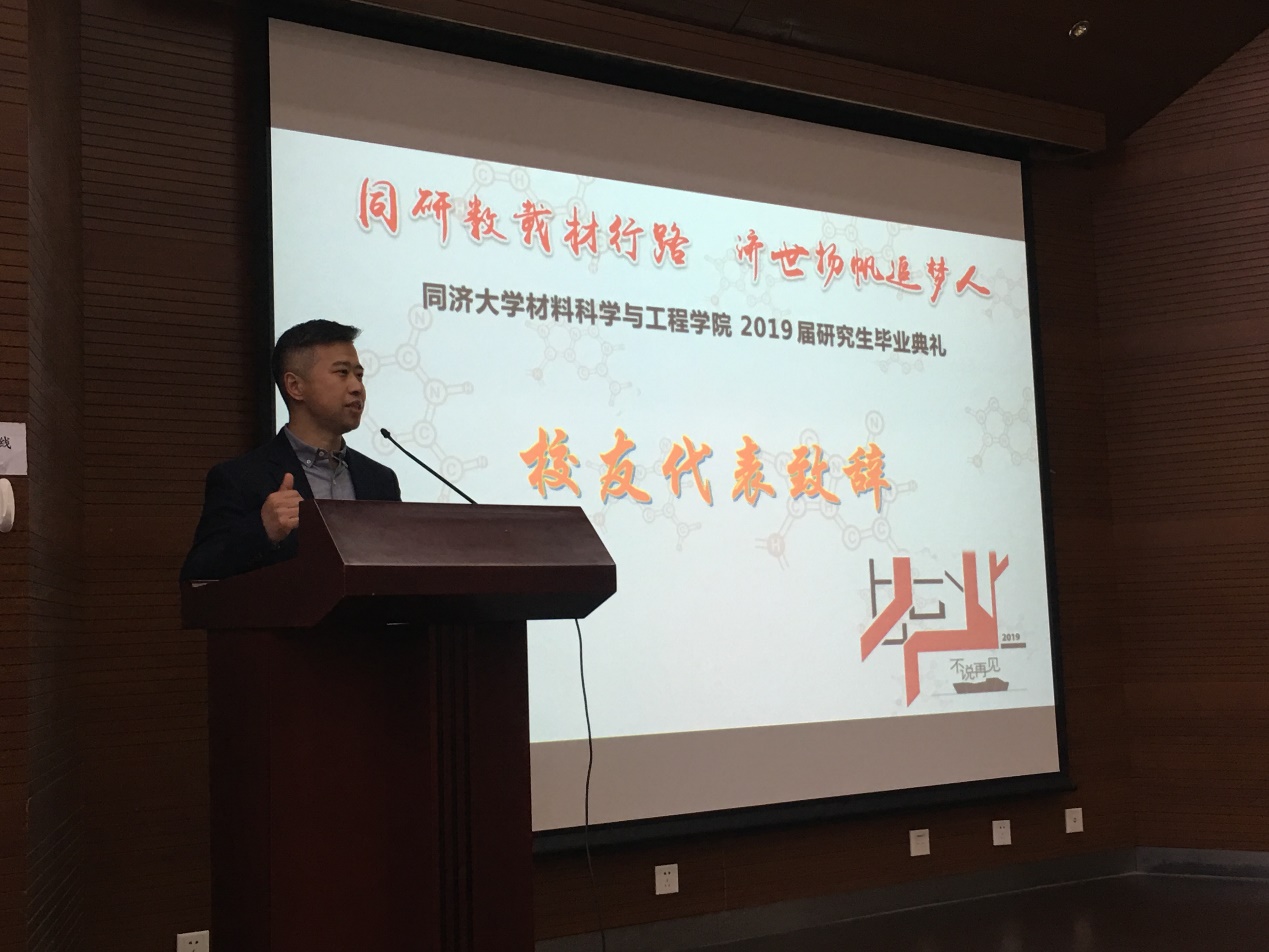 2019届研究生毕业典礼在德才馆二楼报告厅隆重举行。材料学院02届博士毕业生、上海市建筑科学研究院(集团)研发中心副主任俞海勇校友,歪歪漫画