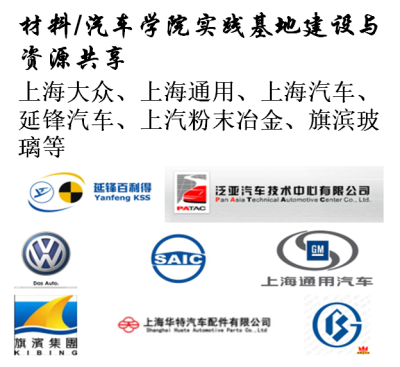 、汽车学院联合提供上海大众汽车、上海通用汽车、延峰汽车、上汽粉末冶金、万丰电子、旗滨集团、中科院上海硅酸盐研究所中试基地等大学生实践教学基地的支持。