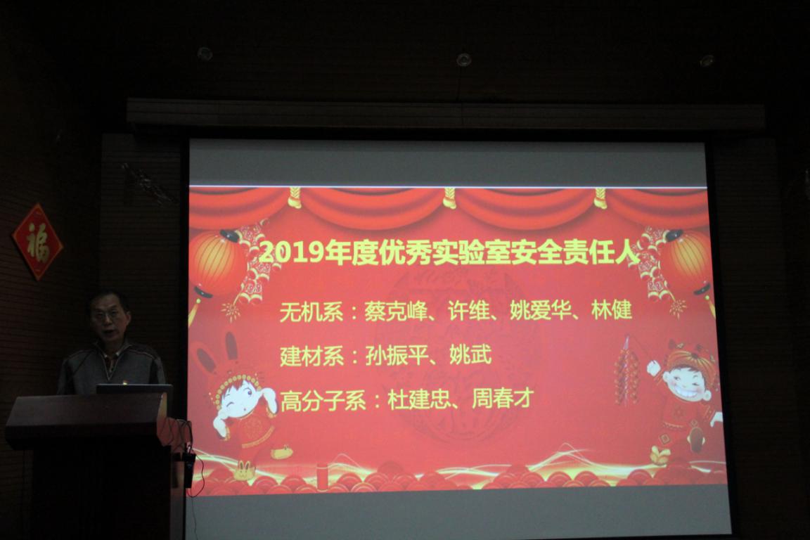 今年新增表彰环节,对2019年度考核优秀的教师以及2019年度优秀实验室安全责任人进行表彰,同时黄云辉老师对获得2019年度特别贡献奖的老师颁发荣誉证书。