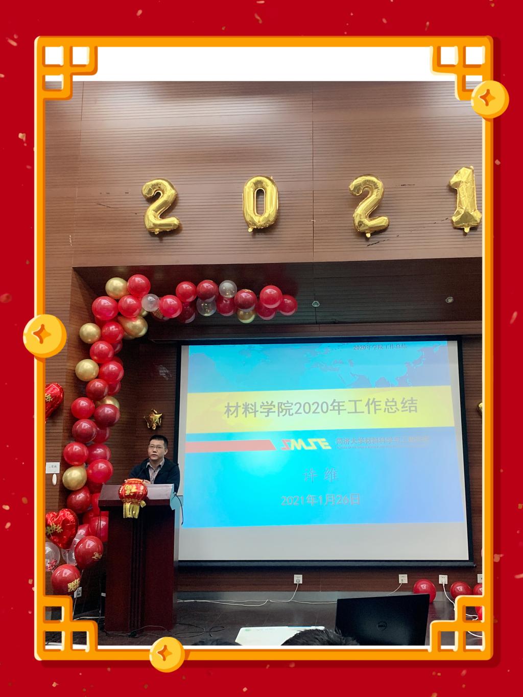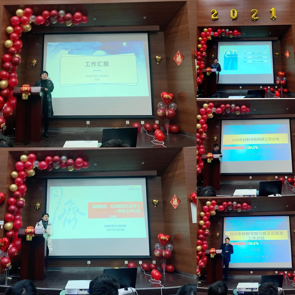 追求卓越服务奖。这一年,立德树人成效进一步提升,国家高层次人才计划取得突破性进展,基础研究成果取得持续性进展,科研能力水平取得阶梯性提升,本科专业建设取得显著性成效,材料学科国际影响力稳步提升。学科的每一点进步,都离不开广大教职员工的不懈努力和辛勤付出!一年以来,学院取得的成绩让人鼓舞,但与推进中国特色世界一流大学和一流学科的建设目标相比还存在不少差距。通过第五轮学科评估,总结前五年,通过系统的“体检”寻找差距。2021年的工作目标,总体思路:继续深化“两轮驱动,人才引领”战略方针,围绕立德树人、科学研究、学科建设等中心工作形成趋同的学术价值观。同时指出2021年具体的任务举措和重点专项工作。许院长表示希望大家在2021年继续不忘初心,砥砺前行,为学院取得更好的成绩努力奋斗。