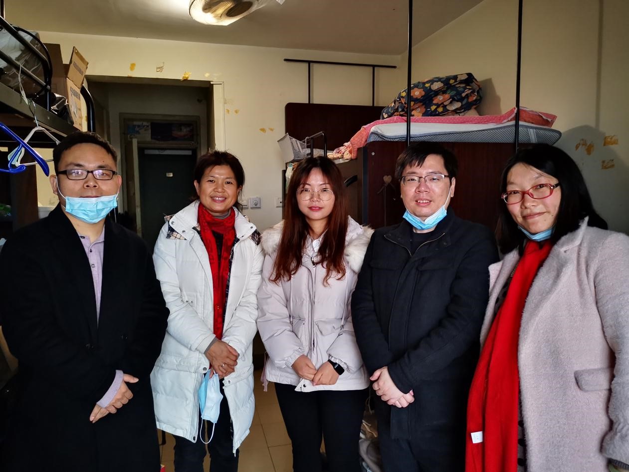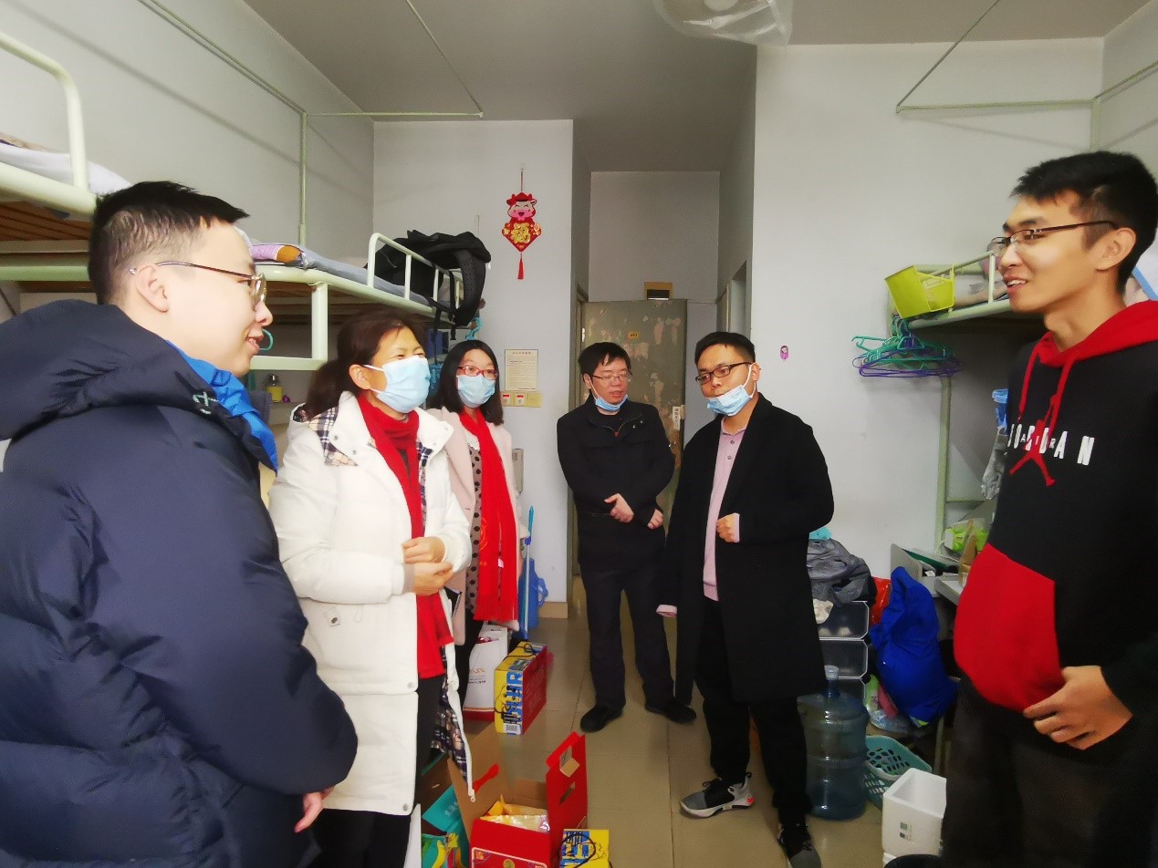 在走访过程中学院老师与同学们进行了深入的交流,全面了解关心学生的留校生活学习情况,以及家在中高风险地区的学生家里的情况。学院老师们叮嘱大家定要做好疫情防控工作,经常与家人联系。假期要健康饮食,劳逸结合,在美丽的校园领略初春的明媚阳光。学院领导告诉大家假期期间有困难要及时跟学院的老师们取得联系,学院老师们假期都在上海,会尽全力帮助同学们解决遇到的困难。