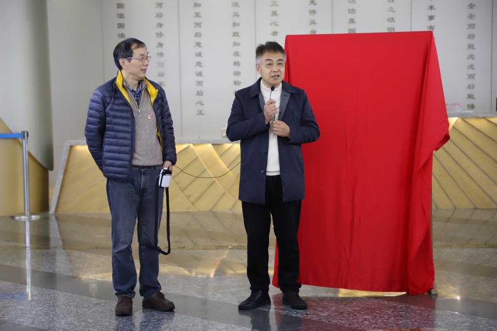开幕式上,材料学院特别甄选了一幅优秀的学生作品,袁华代表学院赠与给图书馆,以表感谢。