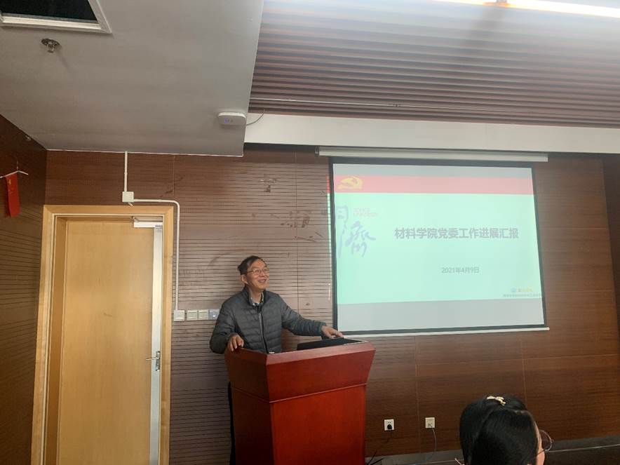 首先,学院党委书记王中平从学院党委去年工作概况和今年工作思路两方面汇报了材料学院党委工作进展。指出广大党员的政治意识和党性得到进一步提高,党风廉政建设不断加强,学习习近平新时代中国特色社会主义思想的自觉性提高,立德树人、教书育人和三全育人理念不断强化,三会一课制度深入党员内心,先锋模范作用得到发挥,巡察整改规范了学院工作,推进学院各项全面提升。今年要瞄准一流学科建设目标,以一流党建为引领,积极投入“党史学习教育”中,团结全院师生,紧紧围绕立德树人根本任务,继续贯彻“两轮驱动人才引领”战略,促进以提升人才培养质量和学科综合实力为重点的内涵式发展,推动学院教学科研服务工作协调持续提高,做好十四五规划起步工作,开启学院发展新征程。