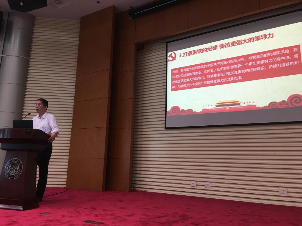 党员大会在同心楼224报告厅召开,会议由材料学院党委书记王中平老师主持,党委副书记、纪委书记给学院全体党员、积极分子上了一堂主题为“用铁的纪律铸造中国共产党坚强领导力”的党课。