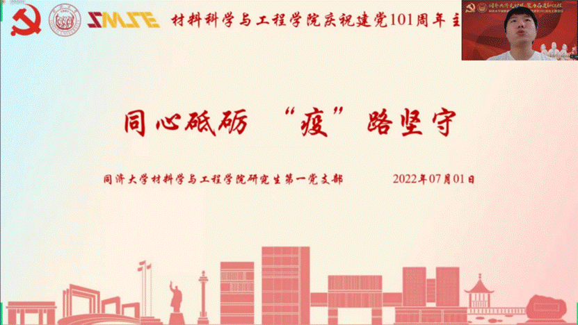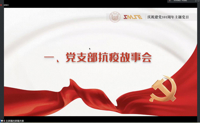 “同舟共济克时艰,聚力奋进新征程”庆祝建党101周年主题党日在庄严的中华人民共和国国歌声中拉开序幕。首先,来自学院教工和学生党支部的8位代表围绕四个主题八个板块分享了自己的战“疫”故事。