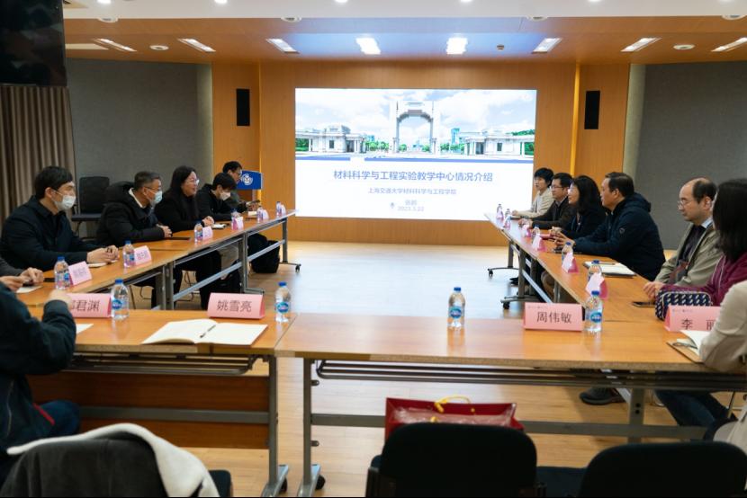 党委书记孙丽珍、副院长冯传良及交通大学实验管理中心相关教师详细介绍了交通大学材料学院实验教学中心的基本情况以及在实验中心队伍建设、实验室安全管理、虚拟仿真实验建设、实验教学课程建设等方面的宝贵经验。交流结束后,调研队伍前往交通大学材料学院实验教学中心实验室参观。