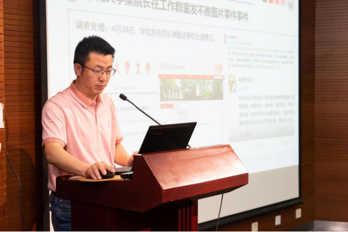 接下来,罗巍副院长组织进行了学院教职员工安全教育学习,通过事故案例分析,介绍了学院安全管理的责任体系及相关要求,以及学院即将推行的实验室安全管理积分制度。并通报了学院空调修缮及实验教学中心建设等相关工作的进度情况。