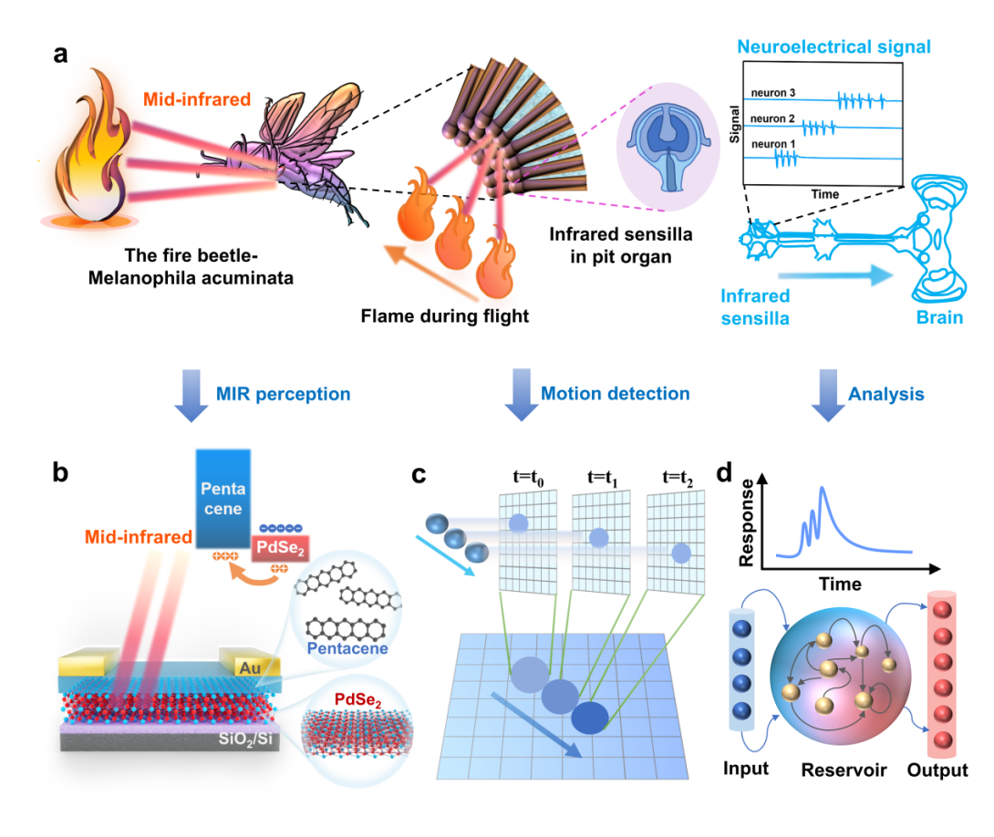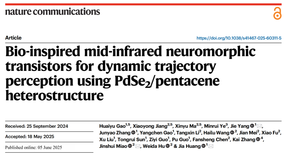 研究成果以Bio-inspired mid-infrared neuromorphic transistors for dynamic trajectory perception using PdSe2/pentacene heterostructure为题发表于《自然・通讯》(Nature Communications)。歪歪漫画