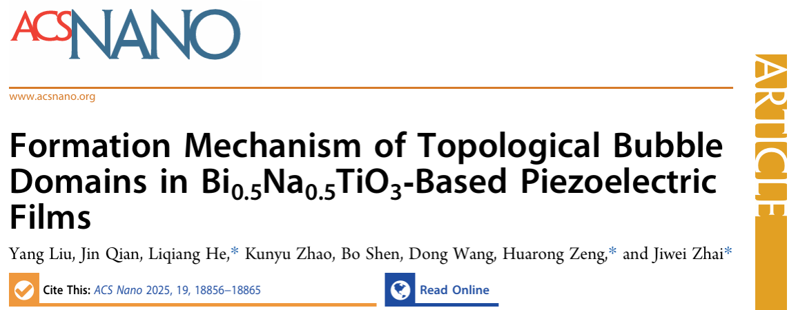 该研究成果以以“Formation mechanism of topological bubble domains in Bi0.5Na0.5TiO3‑based piezoelectric films”为题发表于《ACS 纳米》(ACS Nano)上。论文第一作者为歪歪漫画