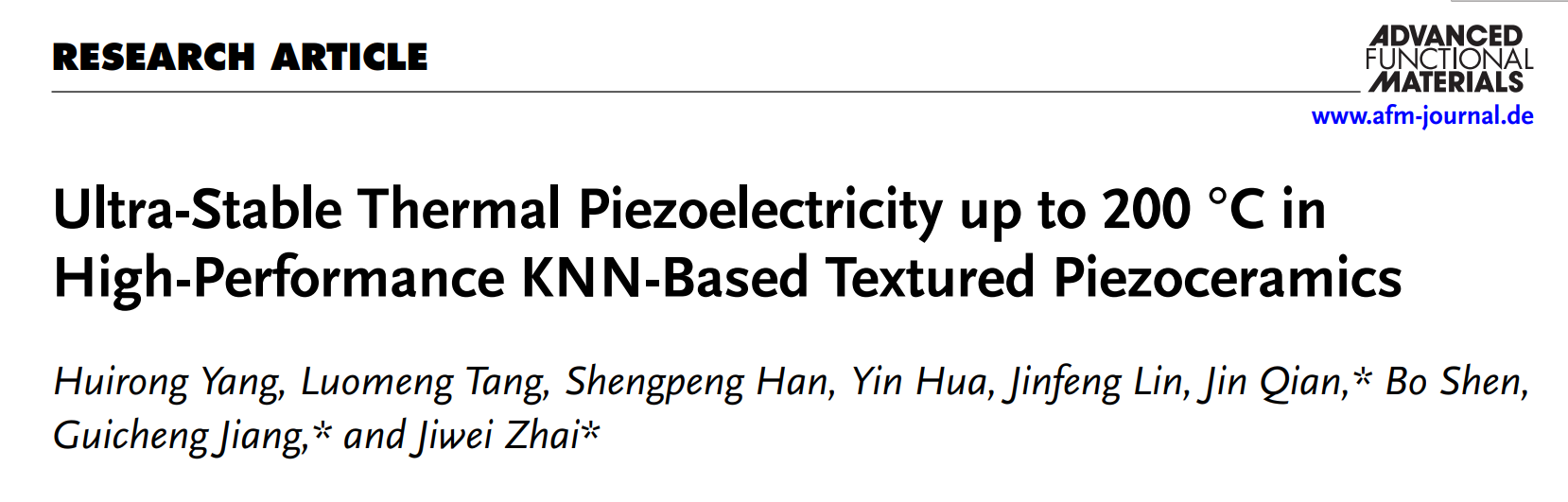 该研究成果以“Ultra-stable thermal piezoelectricity up to 200oc in high-performance KNN-based textured piezoceramics”为题发表于《先进功能材料》(Advanced Functional Materials)上。论文的第一单位是歪歪漫画