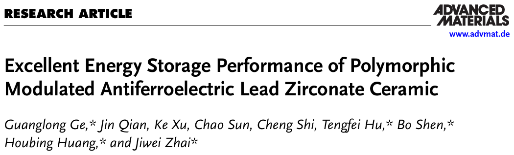 翟继卫教授团队关于压电和电介质储能材料的最新系列成果发表在《科学进展》、《先进材料》等材料领域权威期刊