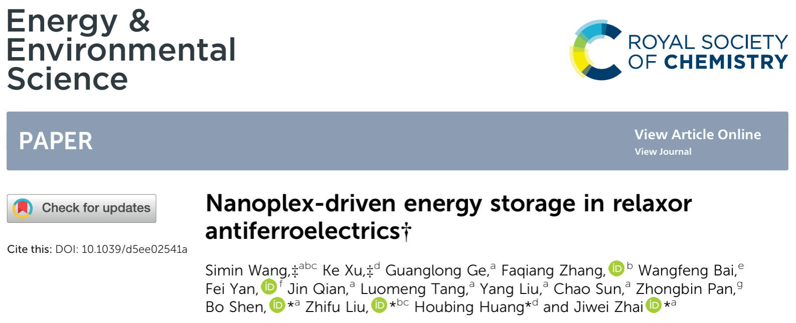 该研究成果以“Nanoplex-driven energy storage in relaxor antiferroelectrics”为题发表于《能源与环境科学》(Energy & Environmental Science)》上。论文的第一单位是歪歪漫画