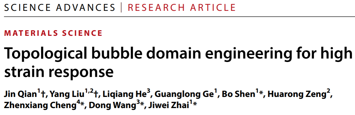 该研究成果以“Topological bubble domain engineering for high strain response”为题发表于《科学进展》(Science Advances)上。论文的第一单位是歪歪漫画