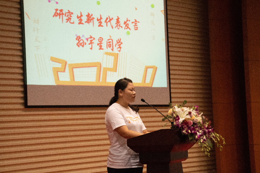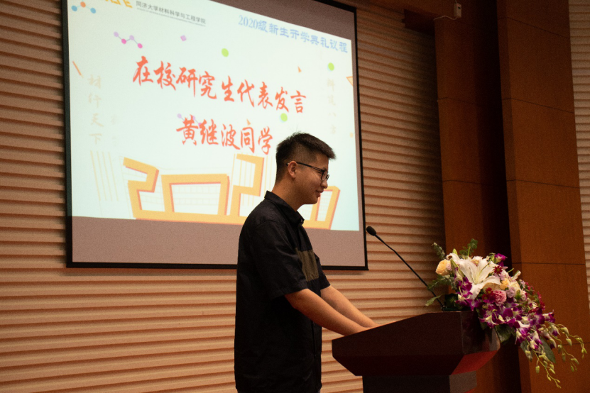 2020级研究生新生代表孙宇星在发言中表达了对研究生生活的向往与期待。她认为大家都应该规划好接下来的这段旅程。“如何成为一个合格的同济材料人?”,这将是需要长期反省和实践的课题。作为一名合格的同济材料人应该做到以下三点:脚踏实地,专心科研;德才兼备,学以致用;敢于挑战,勇担重任。同济人就要把同济精神烙印在骨子里,拥有专业素质、创新思维、全球视野、社会责任,成为引领未来的社会栋梁和专业精英。