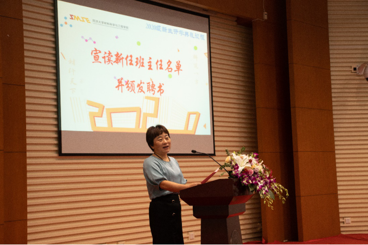 学院党委副书记,纪委书记袁华老师宣读了2020级新生班主任名单,代表学院衷心感谢活跃在教学和科研表第一线的优秀教师担任班主任,并向班主任老师们颁发了聘任证书。