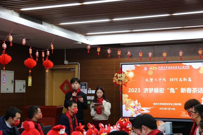 时光飞逝,转眼又是新年。2022年上半年全校师生同舟共济共克时艰,虽然拥有大把的线上调研时间,但理工科的科研不止于理论,仍需要大量的时间进行实验探索,为了科研进度顺利进行今年决定留校过年。学院特意在小年这一天为留校的学生举办了新春茶话会,整个活动过程温馨有趣,满满的新年仪式感!当听到学院的老师们反馈会为留校学子的科研与生活提供充足的保证时更是心头一暖,感恩学校跟学院对我们的关怀!相信每一位同济的材料人会不负众望,为实现祖国伟大复兴贡献自己的力量!