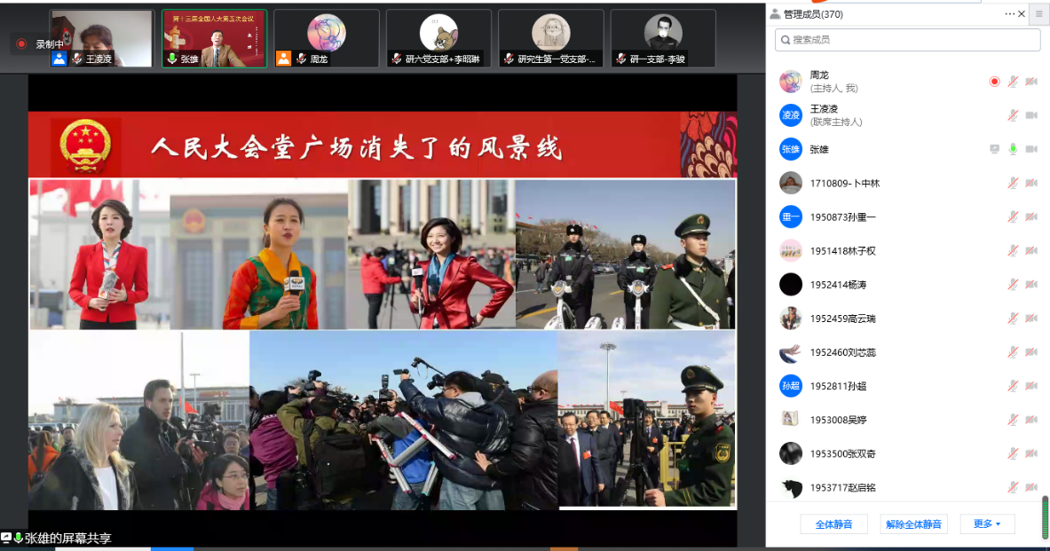 教授、博士生导师、第十一届、第十二届、第十三届全国人大代表、国务院学位委员会评审委员张雄教授,为学院近400位学生党员和入党积极分子在腾讯会议线上平台解读两会精神,领悟时代强音。本次报告会由学院党委副书记王凌凌老师主持。