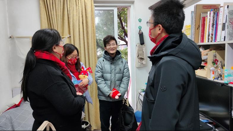 党委书记杨晓杰、院长许维、党委副书记梁春江以及学生工作办公室老师一同走访实验室及学生宿舍,看望并慰问了其他留校学生,通过亲切深入的互动交流,老师们全面了解学生寒假期间留校的原因,询问了近期的学习、生活、科研情况与生活需求,表示学院为留校学子开通科研测试绿色通道。同时叮嘱同学们寒假期间要注意劳逸结合,保重身体,遇到困难及时与学院的老师们联系,学院会尽全力帮助同学们解决。最后学院老师为每位同学送上了丰厚的新春大礼包及俏皮可爱的兔年公仔,与同学们一起用活泼萌趣的兔年窗花装点宿舍,为大家送上了新春祝福,令留校学子感受到“材料大家庭”的温暖。